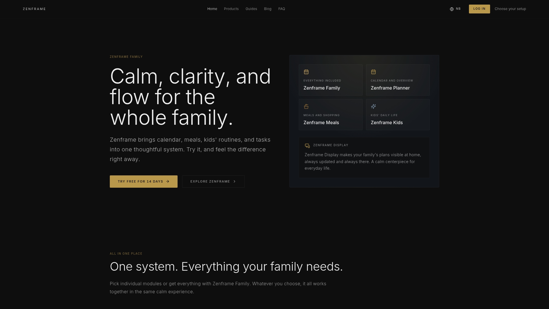 Entdecken Sie auf zenframe.no wie Zenframe mit seinen Modulen Planner, Meals und Kids Ihrem Familienalltag mehr Ruhe und Klarheit bringt. Nutzen Sie die 14-tägige Testphase um das Komplettpaket risikofrei auszuprobieren und erleben Sie das neue Gefühl familiärer Harmonie in Ihrem Zuhause.